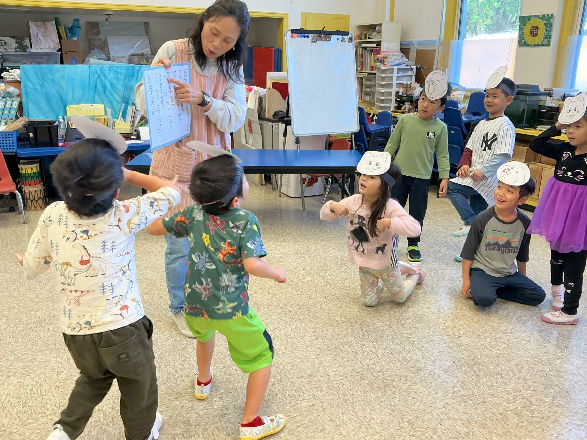 幼小一貫のNY育英学園全日制部門幼児部では、バイリンガル教育を推進していく上で、『第二言語獲得のためには母語が重要である』という理論に基づき保育活動を行っています。つまり、「日本語による活動」をメインにした保育の中で母語を育み、徐々に、子どもたちが楽しく英語に慣れ親しむことを目的に、ネイティブ英語講師と共に、毎日英語での活動を行っています。また金曜日にはプリクロスメソッドとして、バイリンガルの時間や英語アートの時間を設け、子どもたちはより長い時間日本語と英語のシャワーを一緒に浴びることになります。