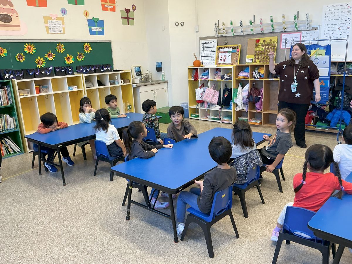 月~木曜日は、各学年毎日1コマのレベル別英語の授業、金曜日は、英語教師が担任として、朝の会から帰りの会まで現地校のように丸一日英語で過ごします。