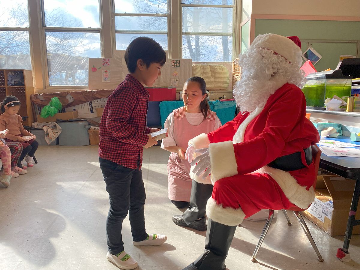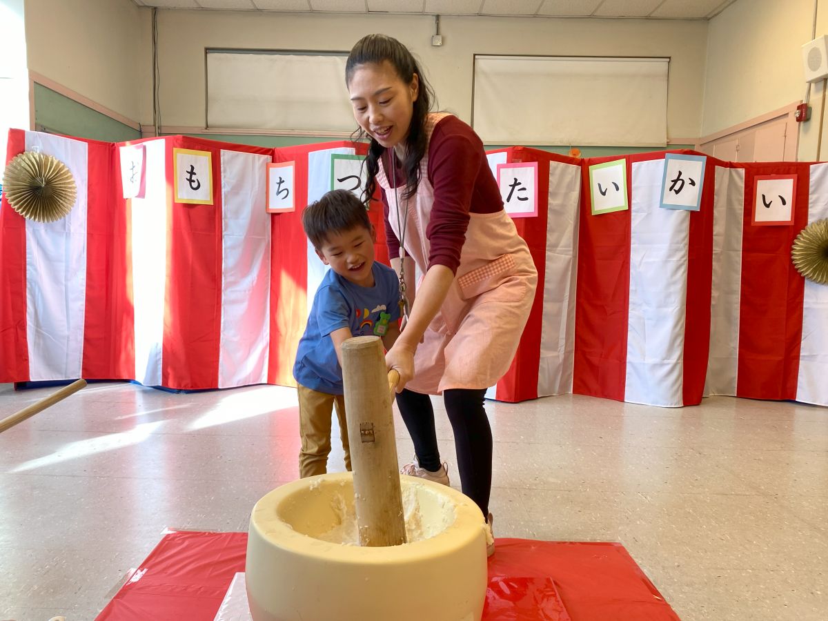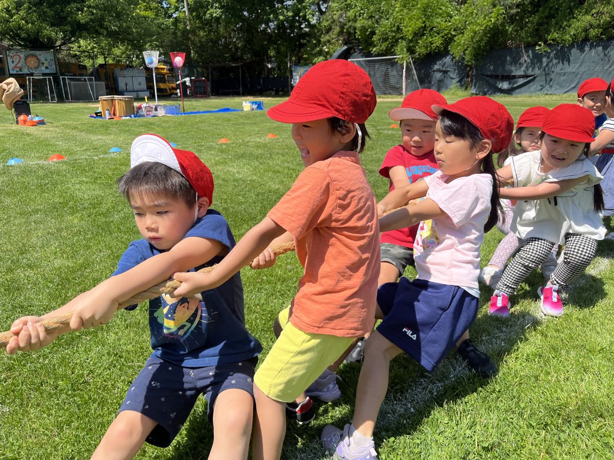 年長児には「話す・聞く」を中心とした言葉遊びを導入し、小学校へのスムーズな移行を支援しています。また、「運動会」や「お正月の集い」などの日本の行事を通して、文化に親しむ機会も設けています。鉄棒や跳び箱などの運動遊びも行い、心と体の成長を育んでいます。