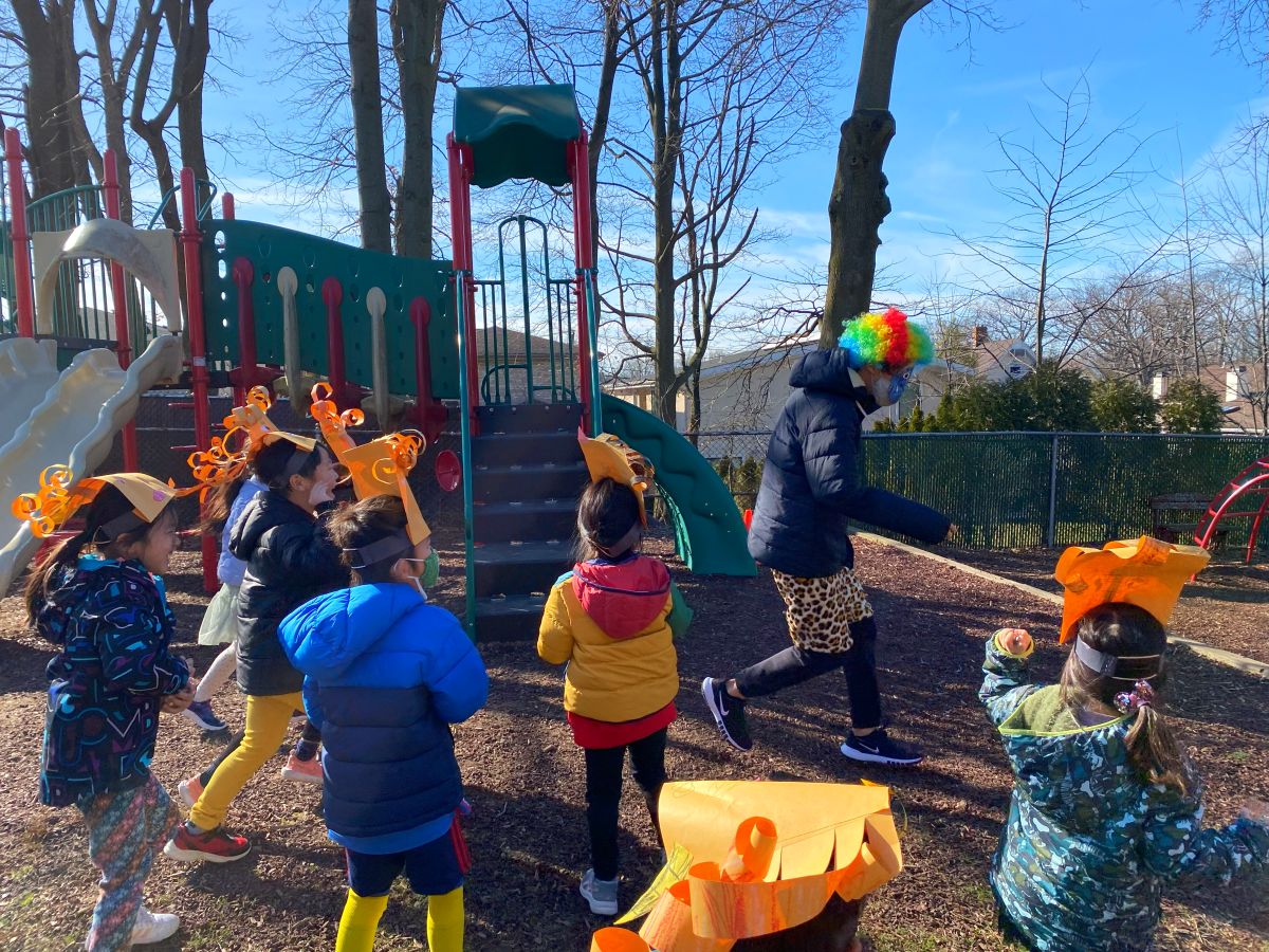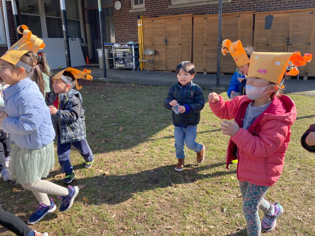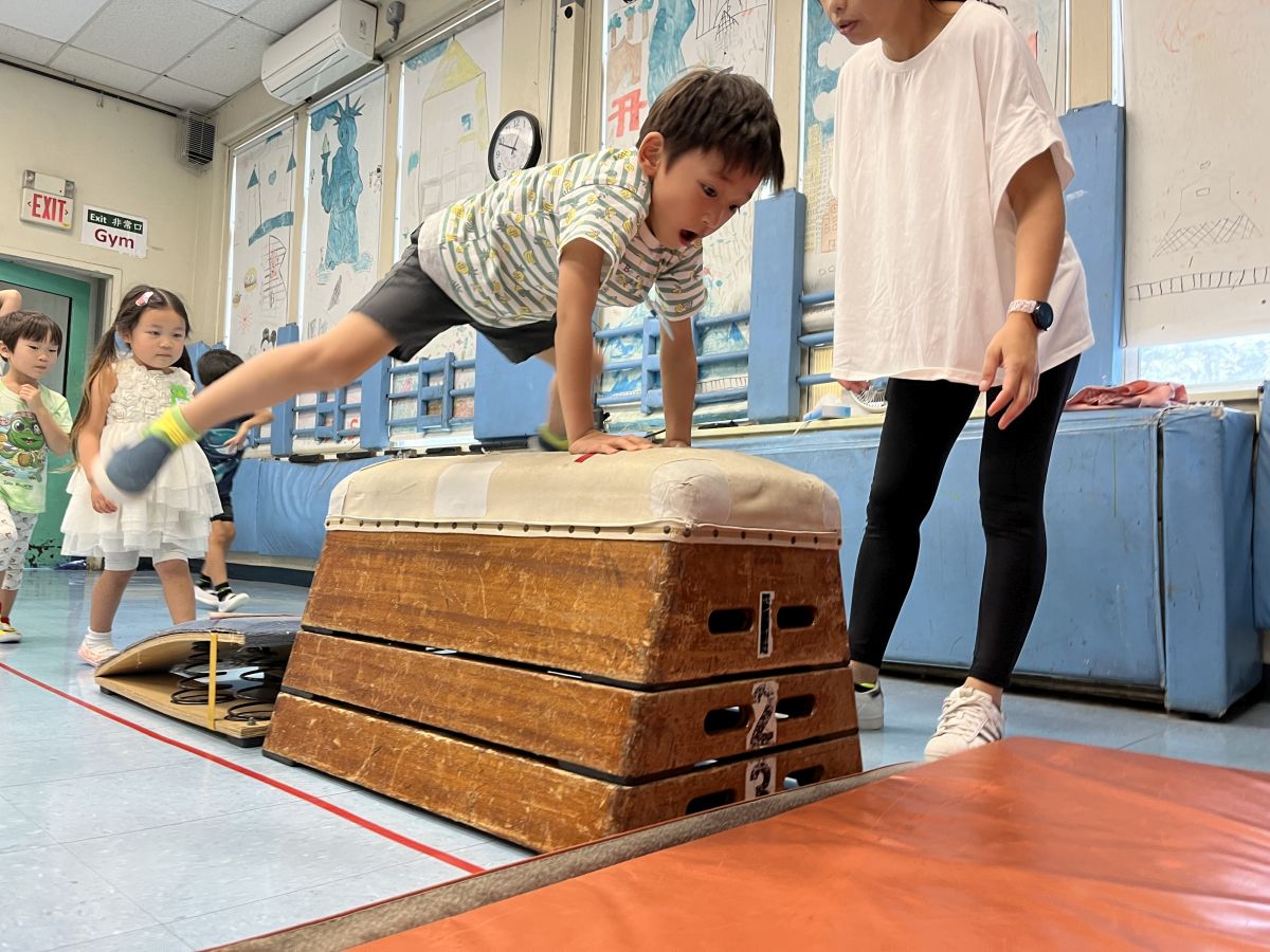 年長児には「話す・聞く」を中心とした言葉遊びを導入し、小学校へのスムーズな移行を支援しています。また、「運動会」や「お正月の集い」などの日本の行事を通して、文化に親しむ機会も設けています。鉄棒や跳び箱などの運動遊びも行い、心と体の成長を育んでいます。
