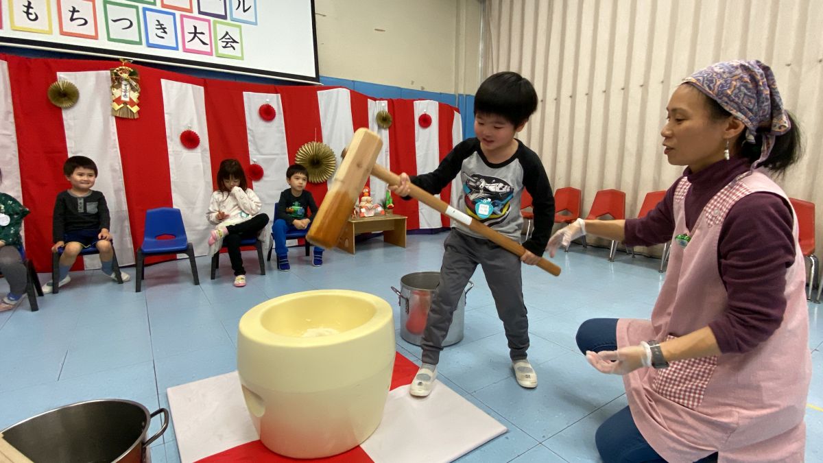 新しい年の始まりをお祝いし、日本の伝統文化に親しみます。書き初めでは、子どもたちが一年の抱負や好きな言葉を筆で書き、集中して心を落ち着ける体験をします。もちつきでは、みんなで力を合わせておもちをつき、できたてを味わいながら日本のお正月文化を学びます。
