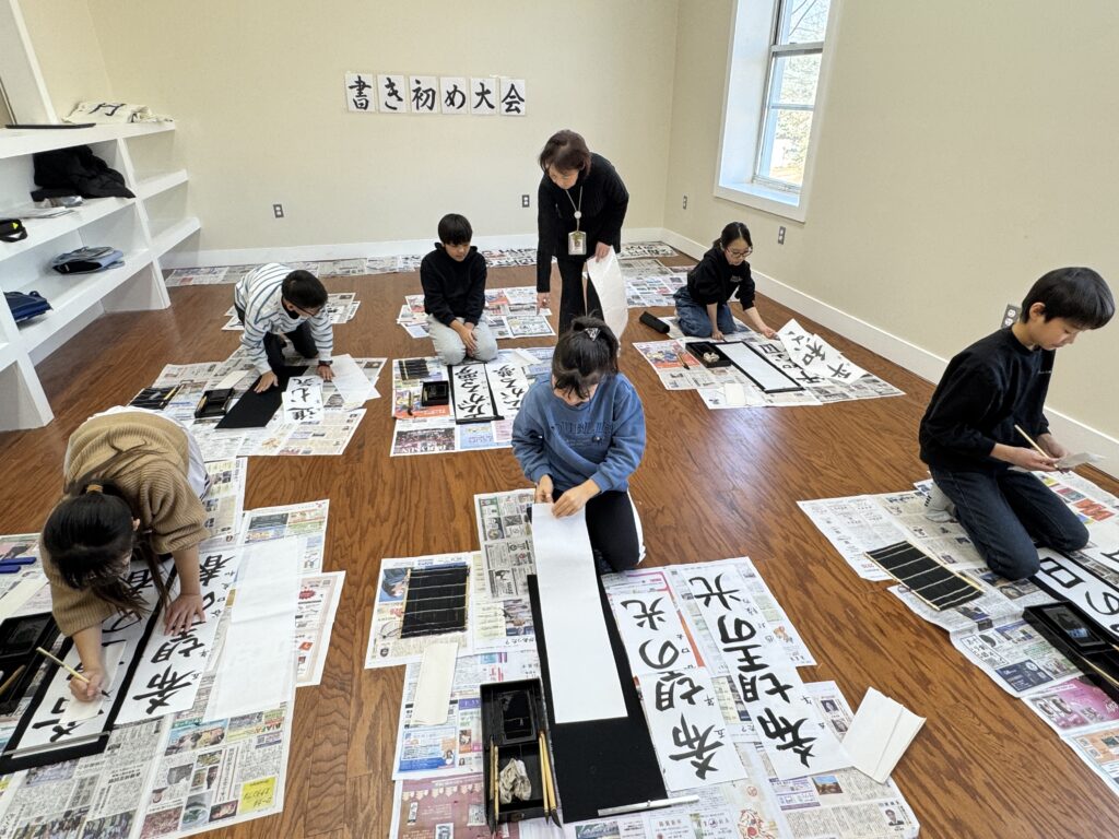 1月13日、ニューヨーク育英インターナショナルスクール小学部にて、書き初め大会が行われた。校内には墨の香りが静かに広がり、いつもとは異なる凛とした空気が流れていた。子どもたちは、それぞれの学年に応じた課題に集中して取り組んだ。