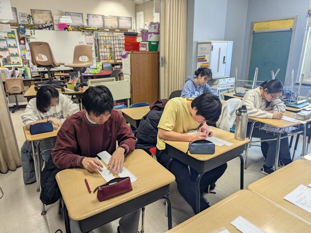1月17日「育英サタデースクール・ポートワシントン校中学部では、硬筆の「書き初め大会」と「百人一首大会」が行われた。